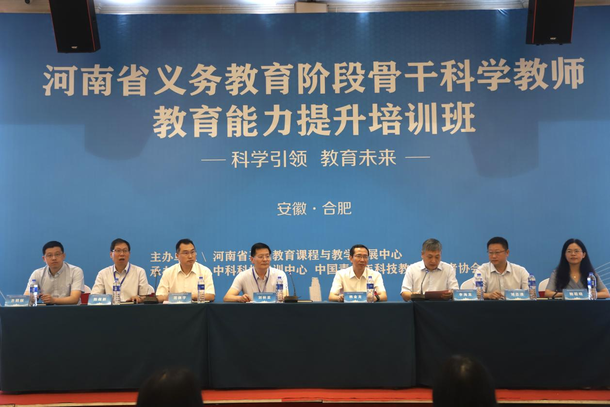 8月14日,培训会议举行了开班仪式。中国科学技术大学副校长杨金龙院士、河南省教育厅总督学刘林亚、河南省基础教育课程与教学发展中心主任李海龙、中国青少年科技教育工作者协会处长范体宇、中科科技培训中心等相关领导出席了开班仪式。开班仪式由李海龙主任主持,范体宇处长进行了致辞。河南省教育厅总督学刘林亚针对培训发表了重要讲话,他阐明了本次培训的主要任务,对我省近年来科学教育总体情况进行总结并指出发展方向,对参加本次培训的全省科学教育教师代表提出殷切期望:认真学习领会,提高科学素养;健全课程体系,落实科教育人;转变教学方式,提升科教质量;着眼社会大课堂,拓展科学实践。